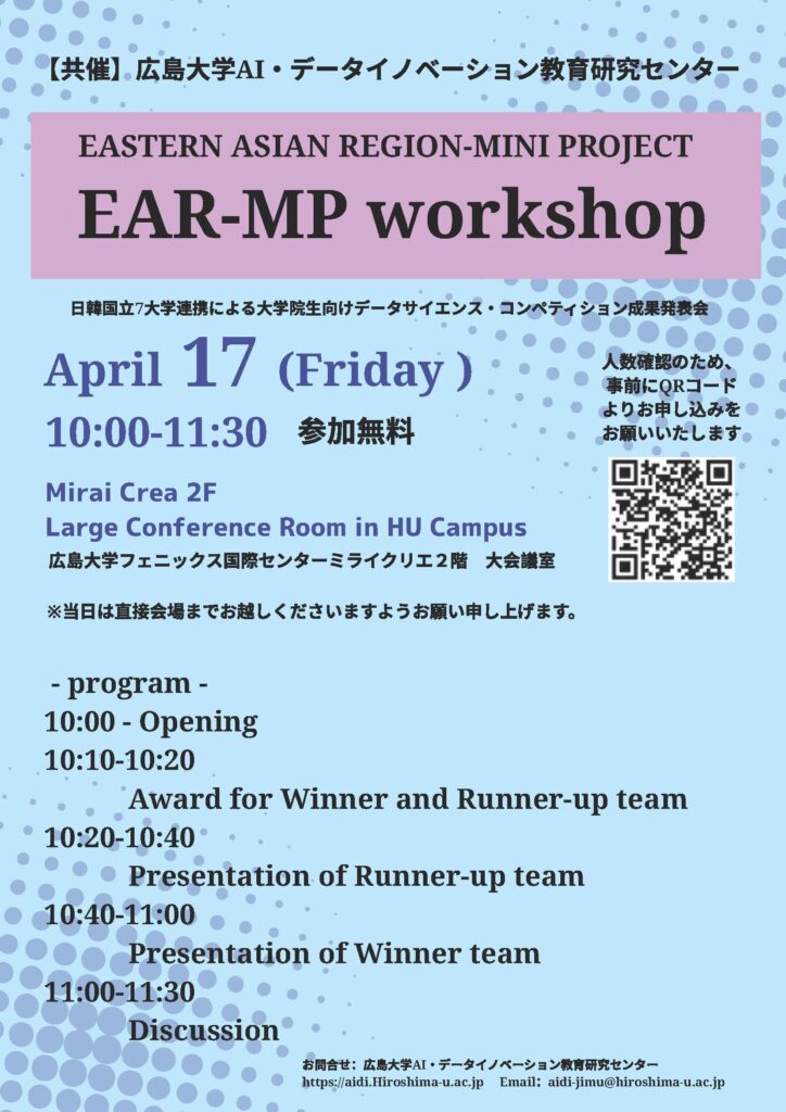 EASTERN ASIAN REGION-MINI PROJECT 「EAR-MP Workshop」~日韓大学院生データサイエンス・コンペティション成果発表会~【参加無料】